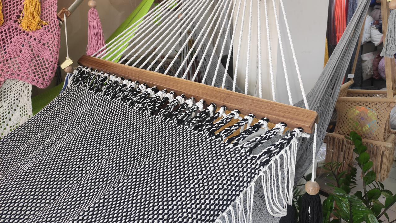 Tejido Algodón: Manila Color Disponible: Trenzado negro/blanco | Disponibles con o sin soportes de maderas Capacidad: 1 – 2 Personas Tamaño: Full Size Largo: 4.60 Metros Ancho: 1.15 Metros Espacio: 3.70 Metros Encuéntrala y adquiere la tuya en nuestra tienda física en PANAMÁ, también contamos con servicio a domicilio en toda la Ciudad de Panamá y envíos en todo el país. Puedes procesar tu pago con tarjetas, yappy, efectivo o ach bancario. Estamos Ubicados en: Avenida Cincuentenario, Coco del Mar, Panamá Ciudad, PH Oldy Local 2B, Planta baja, al final de Calle 50, al frente de la Suzuki/al lado de la Ford. Lunes a Sábados: 10AM a 7PM. Telf. 6858-8203 - 394-5854. WWW.NICASHAMACAS.COM CATÁLOGO WA: +507 6858-8203